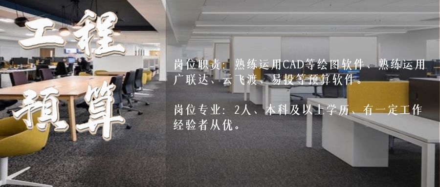 崗位職責:熟練運用CAD等繪圖軟件、熟練運用廣聯達、云飛渡、易投等預算軟件。