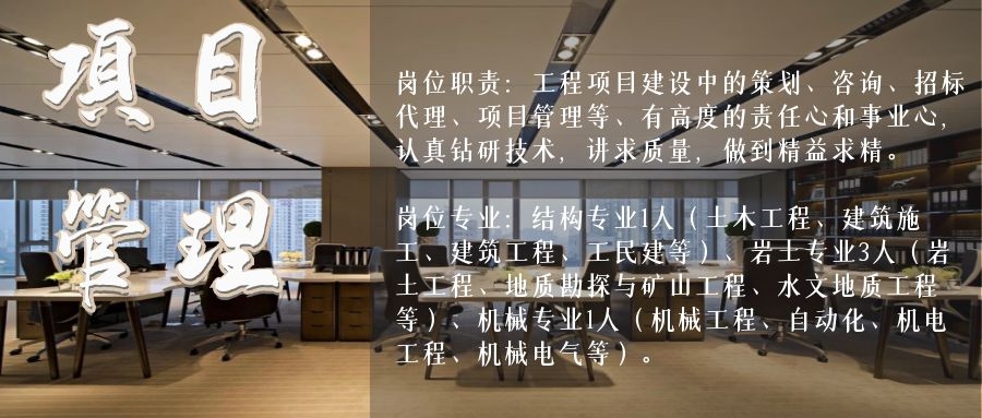 崗位專業:勘察技術與工程2人、巖土工程2人、工程地質與水文地質2人。專科及以上學歷,有工作經驗者從優。
